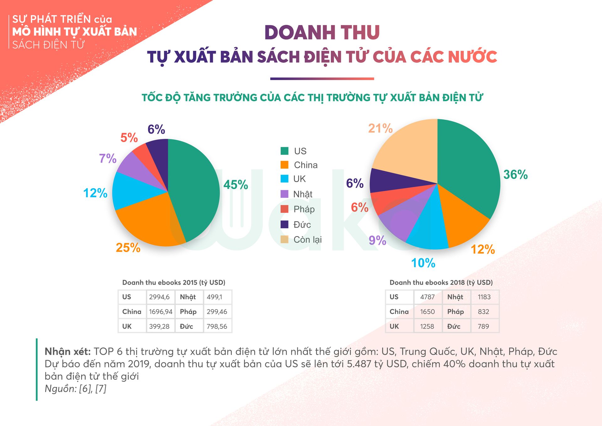 Theo Báo cáo thị trường sách điện tử - Quý IV/2018 và Quý I/2019 – “Sự phát triển của mô hình tự xuất bản điện tử” trong năm 2018, doanh thu của 2 thị trường này chiếm 21% tổng doanh thu thế giới.